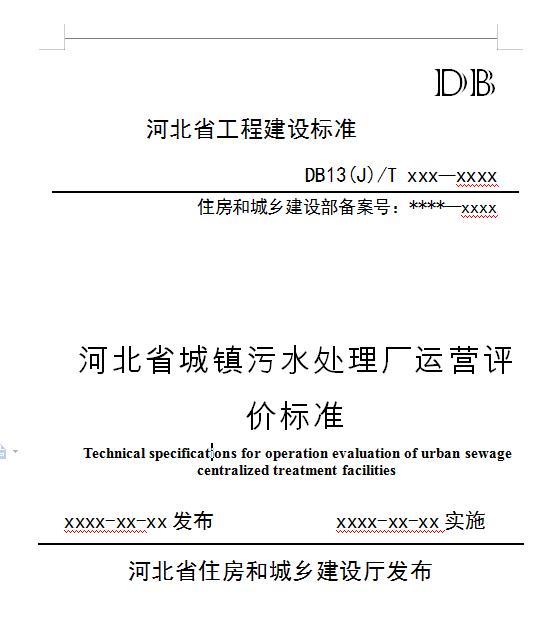 河北省城鎮污水處理廠運營評價標準(征求意見稿)-德佳環保