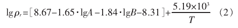 式中:ρr為比電阻,Ω·cm;A為鐵原子百分數(shù);T為煙氣溫度,K;B為鈉和鋰原子的百分數(shù)(在625K、40%空隙率時)。