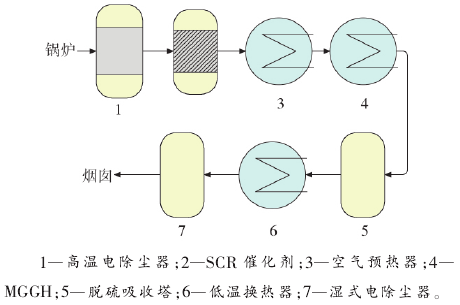 煙氣系統(tǒng)的設備布置采用方式:高溫電除塵器+脫硝裝置+空氣預熱器+MGGH+脫硫裝置+低溫換熱器+濕式電除塵器,見圖3。