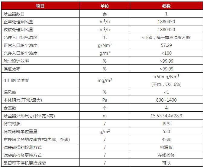布袋式除塵器技術(shù)參數(shù)性能及投資