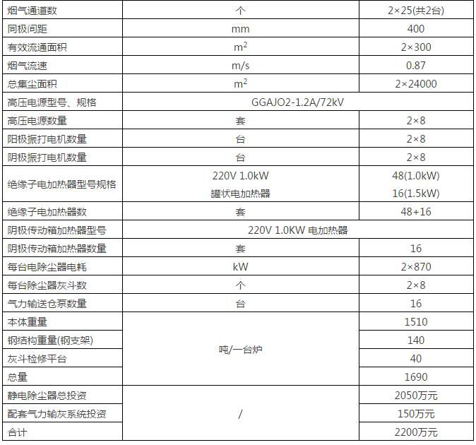 靜電除塵技術(shù)參數(shù)性能及投資表